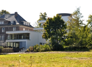 Die prominente Lage an der Ems bietet ein starkes Grundstücksgefälle zur Flussaue. Die Topografie nutzend, erscheint das Gebäude von der Erschließungsebene als eingeschossiger Kubus. Dieser wird von den darunter liegenden, in den Hang gearbeiteten Ebenen getragen, und überkragt diese in einer spannungsvollen Geste.