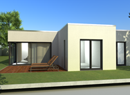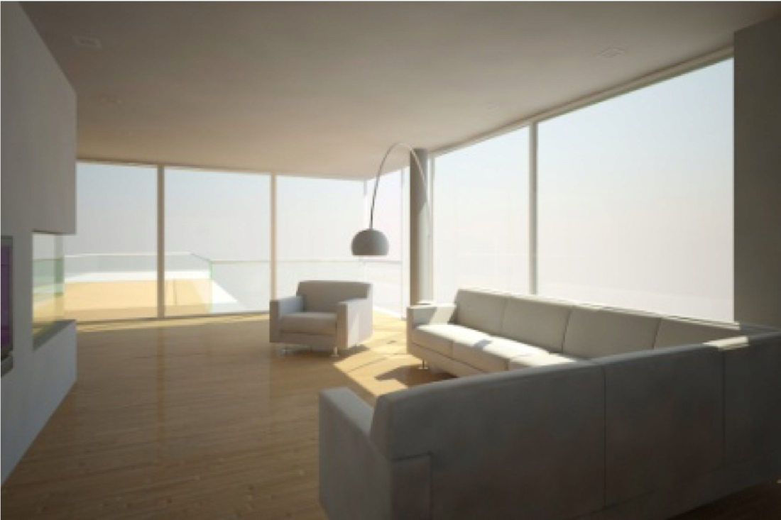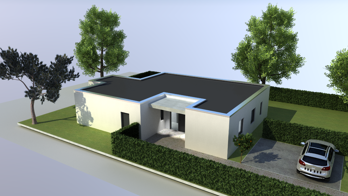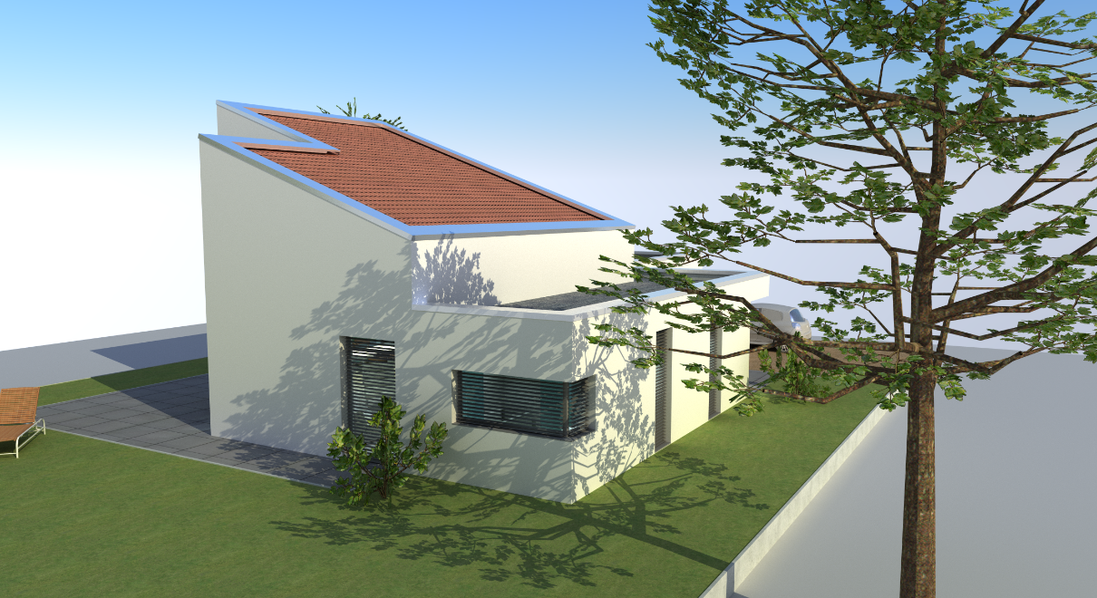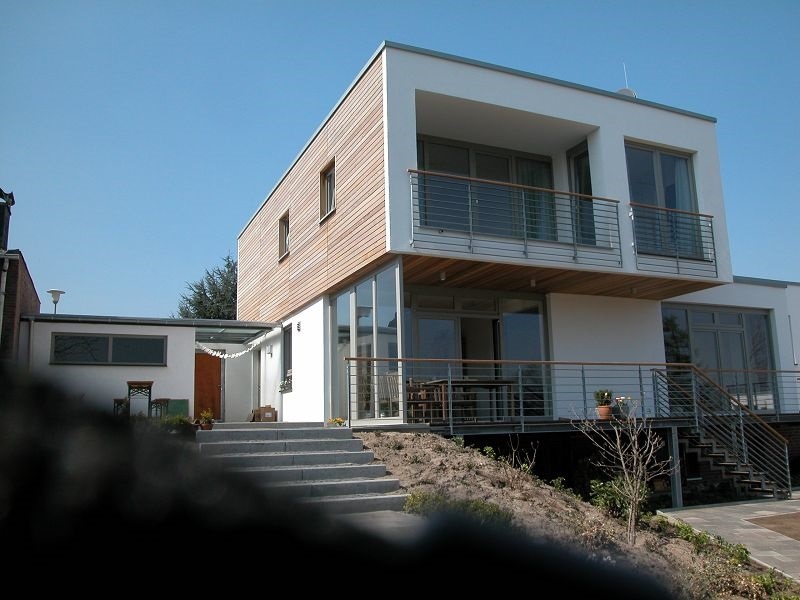 Vom Fluss aus betrachtet, erscheint ein 3 geschossiger Gebäudekörper. Dieser bietet den Bewohnern spektakuläre Aussichtspunkte in die naturbelassene Aue.